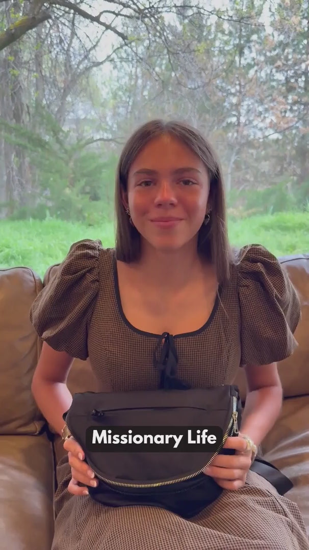 Loved by sister missionaries, service missionaries, senior missionaries, and Latter-day Saint women alike, this crescent-shaped shoulder bag holds a Book of Mormon perfectly and helps you stay prepared with six pockets. Whether you’re walking, biking, traveling, or commuting to church, this bag is built for life in the mission field and everyday gospel living.
